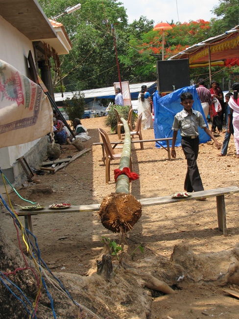 | 12.00 | A tall arecnut tree is cut and brought to the site of Pana. Shashi is the ritualist. This is to perform Kumpu Bali. | |