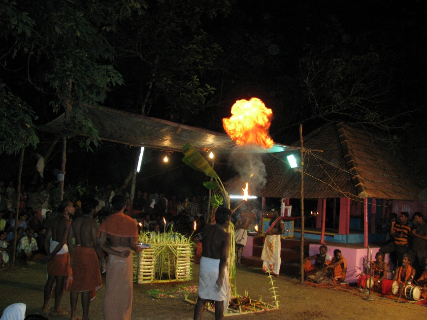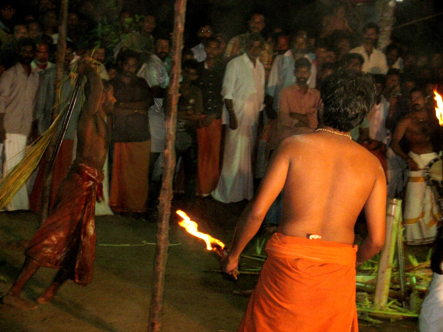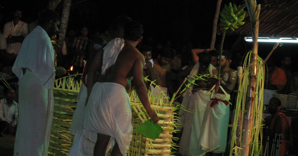 | 2.00 am | Leading the deities back to their places | Appoppan and other deities are ritually taken back to their places. The Urali takes the staff and others the swords and the spear and puts them back in their places. |