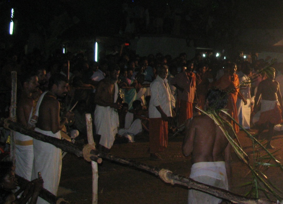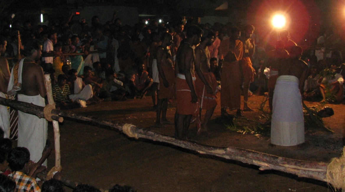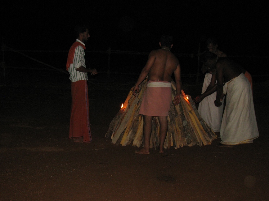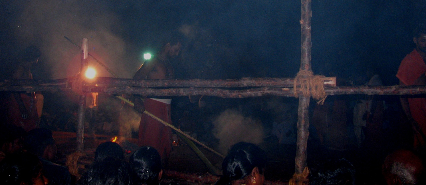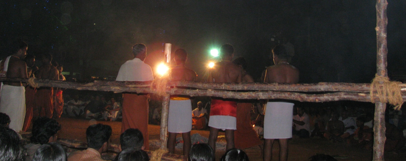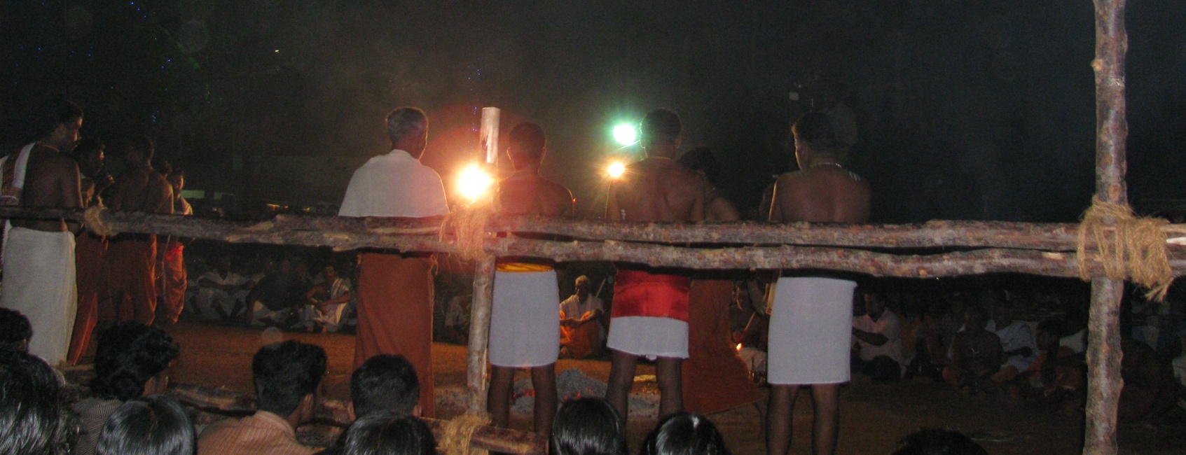 | 2.30 am | Leading the deities back to their places | Appoppan and other deities are ritually taken back to their places. The Urali takes the staff and others the swords and the spear and puts them back in their places. |