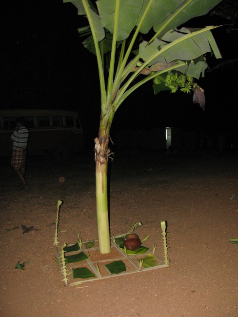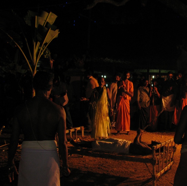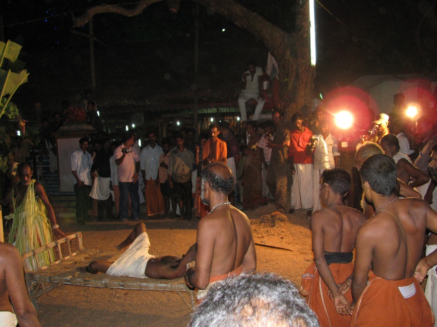 | 1.30 am to 2.00 am | Dikku Bali | Plantain trees are planted at eight corners of the temple. The ritualist lying on a cot becomes possessed. The Tantri breaks the Kalasham and the possessed ritualist cuts of the plantain trees one by one. In between he becomes unconscious. He is carried off on the cot. |
