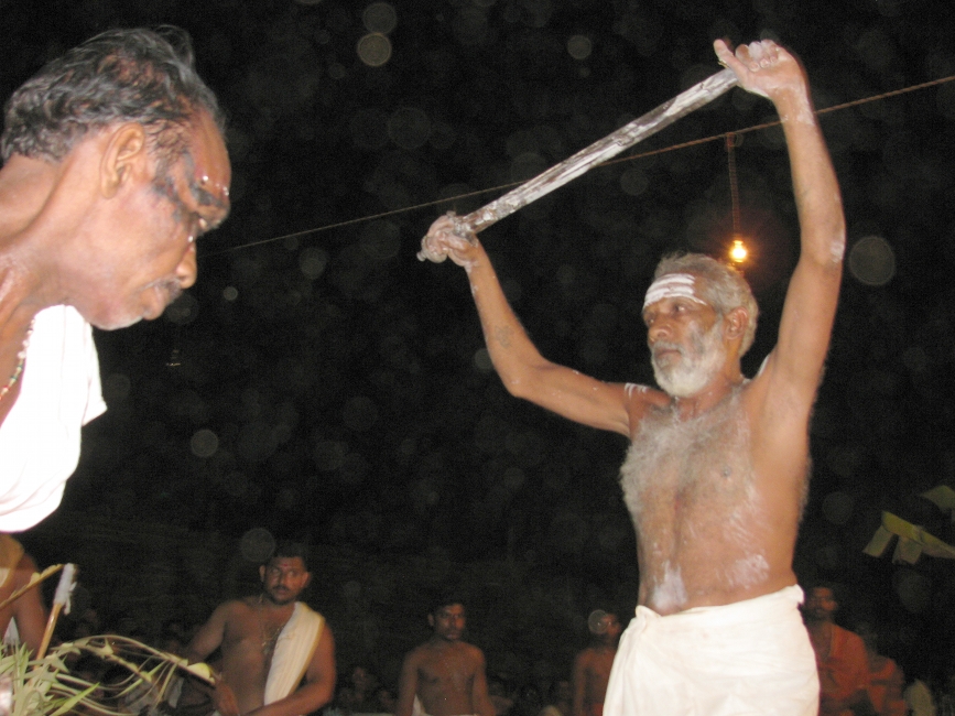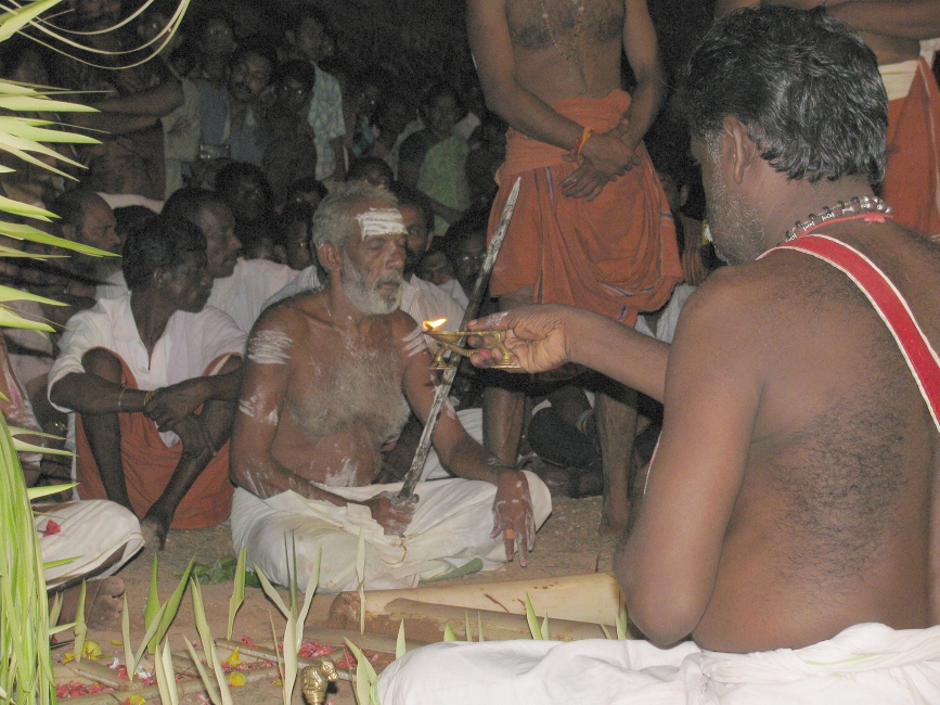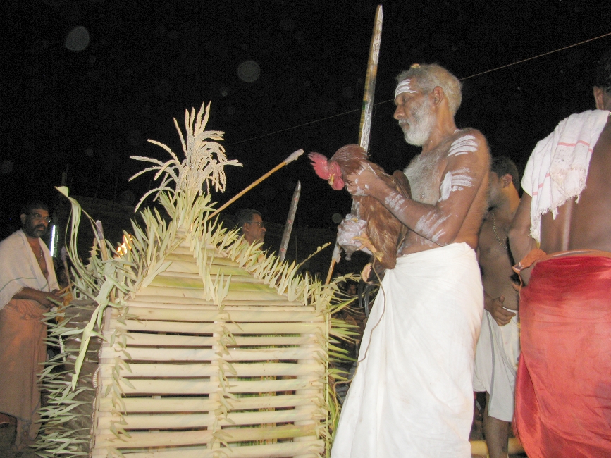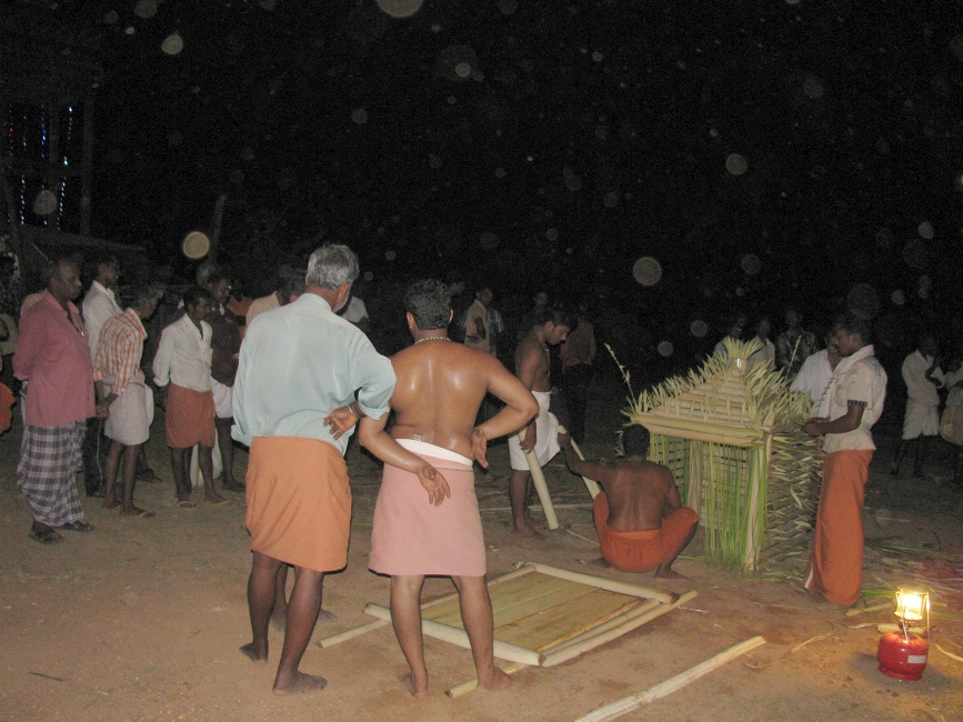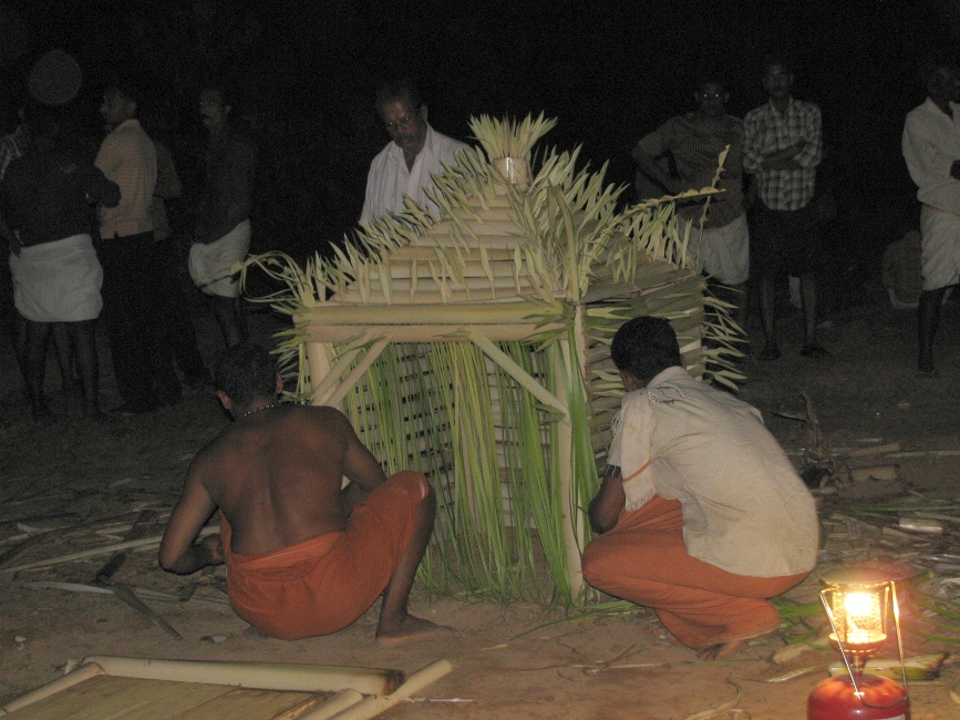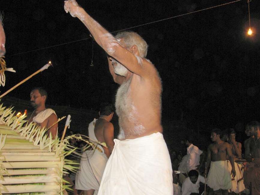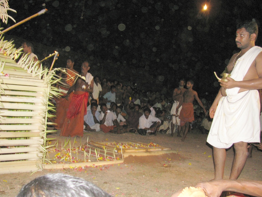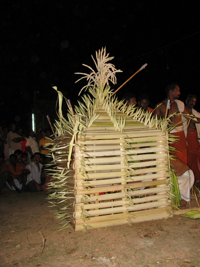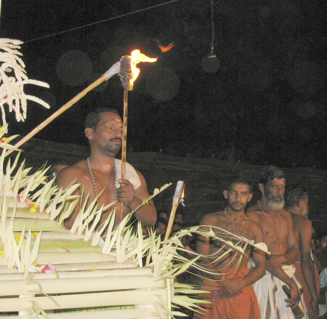 | 2 am | Leading the deities back to their places | Appoppan and other deities are ritually taken back to their places. The Urali takes the staff and others the swords and the spear and puts them back in their places. |