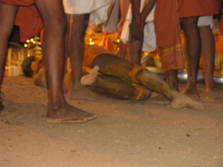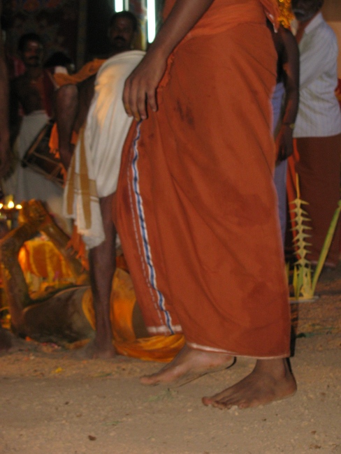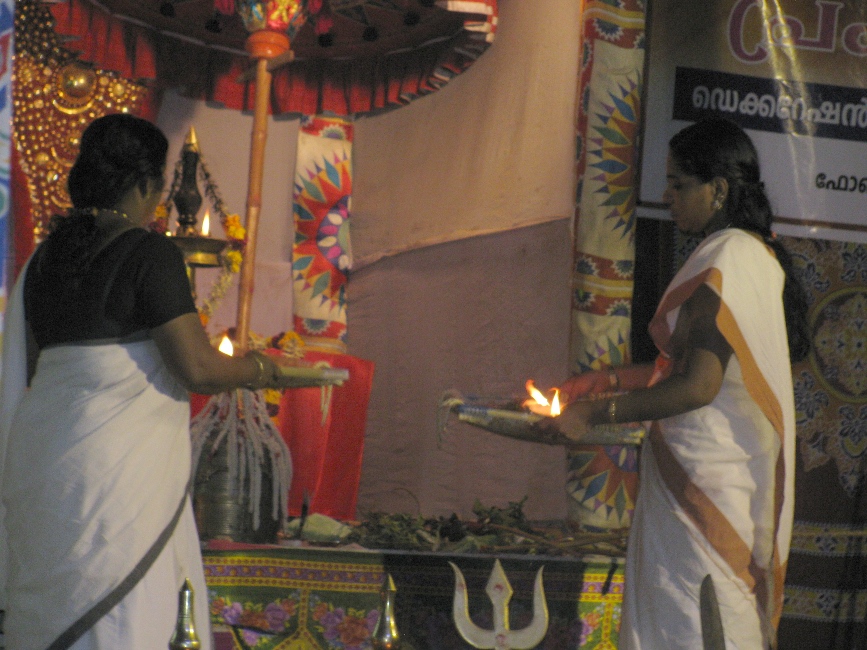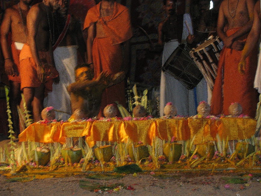| 2.00 am | Leading the deities back to their places | Appoppan and other deities are ritually taken back to their places. The Urali takes the stick and others the swords and the spear and puts them back in their places. |