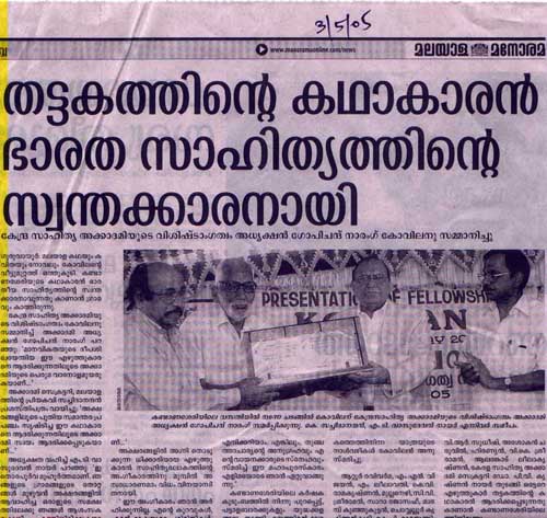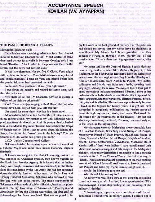 Sahitya Akademi Fellowship Presentation to Kovilan