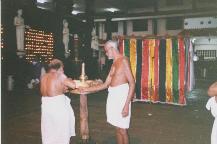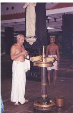 Brahmin lighting the lamp (October 30, 2004)