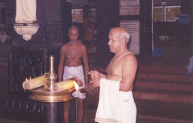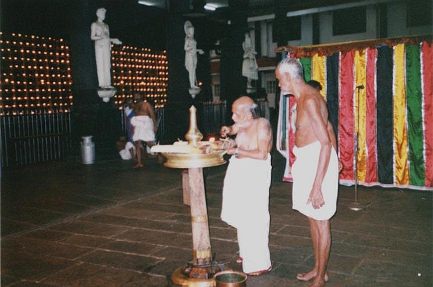 M. Vasudevan Nambudiri lighting the lamp (February 11, 2004)