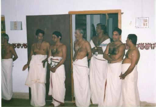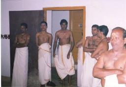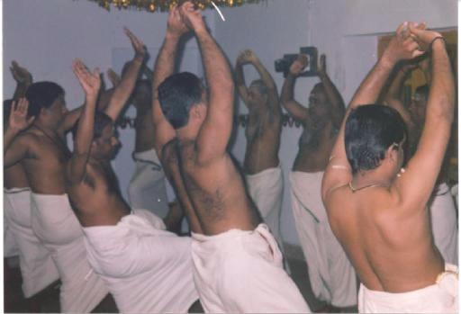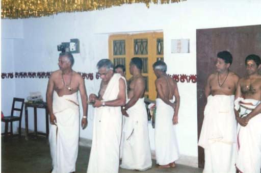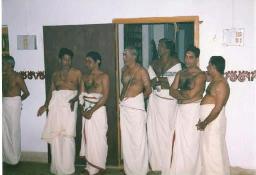 Maddalam Asans took out the two maddalams and hung them around their waists. Asan Shri T.P.N. Pisharoty took the chengala and Asan Shri Mohanan took the Elattalam.