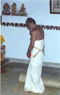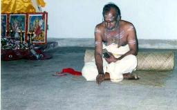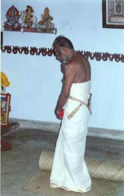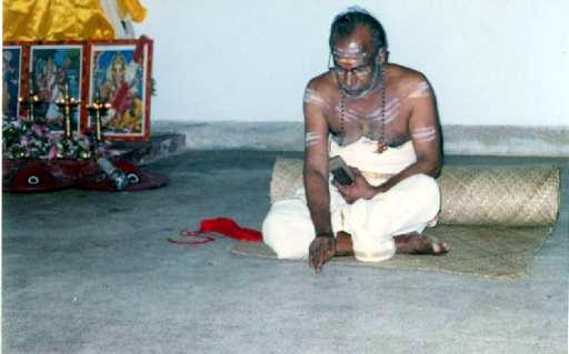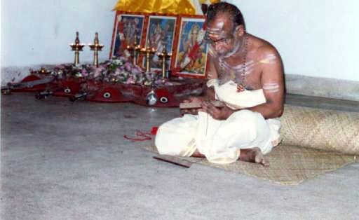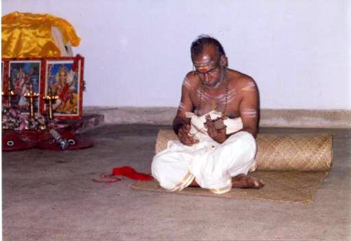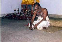 Asan Sri T.P.N. Pisharoty, sat on a mat, wrote 'Hari Sri' on the floor with